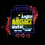 Auf dem Nachtmarkt gab es viele schöne T-Shirts, die auf ihren neuen Besitzer warteten. Änn & Fränn schlugen sofort zu, da der Verkäufer uns dieses Mal nicht zu Tode nervte und wir ausreichend Entscheidungsspielraum hatten. Das erste formschöne Biermotiv-Shirt war gesichert. Mit der Beute im Gepäck beschlossen wir die Pub Street mit unserem Besuch zu beehren. Fränn schoss noch ein Foto von der bunt blinkenden Leuchtreklame, als plötzlich unsere Reisebekanntschaft Silca vor uns stand. Unser gemeinsamer Reiseweg endete am ersten Tag in Phnom Penh. Jetzt stand sie einfach vor uns.