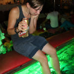 Als sich wider Erwarten am Abend doch der kleine Hunger meldete, waren wir skeptisch und stillten ihn nur mit einem scharfen Papaya-Salat im Hotel zusammen mit Silca. Danach ging es zusammen erneut in die Stadt hinaus. Änn wollte sich diesmal auch die Füße behandeln lassen. Aber nicht von einem Menschen sondern von fleißigen kleinen Tierchen. Die Dr. Fisch Massage für zwei Dollar und einem Bier gratis sollte das der Beautyteil des Abends werden. Die vielen kleinen Fische fielen über Änns Füße her, als hätten sie eine Woche nichts zu fressen bekommen. Ein ganzer Schwarm versammelte sich um Änns wohl delikate Hornhaut. Es brodelte im Wasser. Erst kitzelte an Änn so sehr, dass sie die ganze Einrichtung in Grund und Boden lachte. Später hielt sie still und ließ die Fische ihre Arbeit verrichten. Fränn hingegen konnte ihre Füße einfach nicht still halten. Die kleinen tüchtigen Helfer konnten so die Reinigungsprozedur nicht ordnungsgemäß durchführen. Ein eher unangenehmes Gefühl an das sich Fränn nicht erfreuen konnte. Silca genehmigte sich in der Zwischenzeit eine Massage.