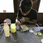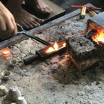 Mit dem Boot fuhren wir ca. 150 Meter bis zur nächsten Verkaufsveranstaltung, einer Silberschmiede. Auch hier empfing uns eine Frau wieder herzlich und reichte uns Tee. Diesmal schlugen wir zu und ließen uns das warme Getränk schmecken. Ein junger Mann im Trikot der Deutschen Fußball Nationalmannschaft schmolz an einem auf den Boden aufgebauten kleinen Kohleofen unter dem Vortrag der Frau einen Silberklumpen. Dann wurden uns drei Männer gezeigt, die in mühsamer Kleinarbeit die Ketten und Anhänger, die im Verkaufsangebot der Hütte standen, herstellten. Der Rest der Hütte war reine Verkaufsfläche. Silberschmuck interessierte uns nicht weiter, schnell stiegen wir wieder in das Boot und ließen die verdutzt schauende Verkäuferin in ihrem Ladengeschäft stehen.