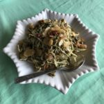 Etwas erschöpft vom vielen Shopping hielten wir auf dem See an einem auf Stelzen errichteten Restaurant. Hier genehmigten wir uns den Klassiker der burmesischen Klassiker: den Teeblattsalat. Der Teeblattsalat mutierte zu Fränns neuem Leib- und Magengericht. Zum Salat wurde uns eine nette Tasse Grüntee gereicht. Wir genossen das Essen und den Ausblick auf den See und das Pfahldorf. Mit einer ordentlichen Portion dieses traditionellen Gerichtes im Magen ließ sich die bevorstehende Shoppingtour besser ertragen, denn wenn Änn & Fränn Hunger haben, dann ist mit ihnen nicht gut Kirschen essen.