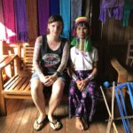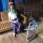 Rein in den Kahn und weiter ging die Tour über den Inle-See. Fränn war schon sehr gespannt auf die Langhalsfrauen auch bekannt als Giraffenhalsfrauen an der nächsten Station. Ein Werbeplakat an der Stelzenhütte kündigte sie uns an. Vorfreudig liefen wir eilig die kleine Treppe zum Eingang hinauf. In der holzigen Behausung befand sich eine Weberei. Die Langhalsfrauen legten selber Hand an und stellten feinen Stoff für Longyi und Schals her. Wir waren fasziniert von der Schwere des Halsschmuckes. Da soll mal jemand sagen Fränn ihre Lieblingskette sei schwer. Auch hier wurden wir wieder fündig und rundeten den Shoppingeinsatz für den heutigen Tag ab.
