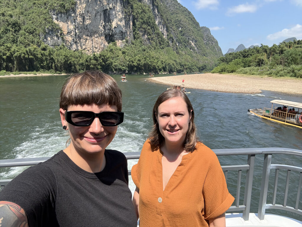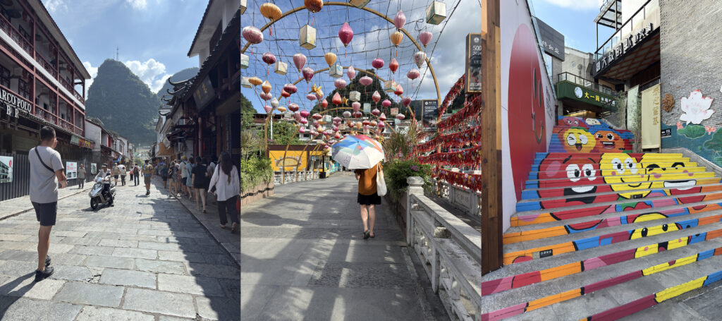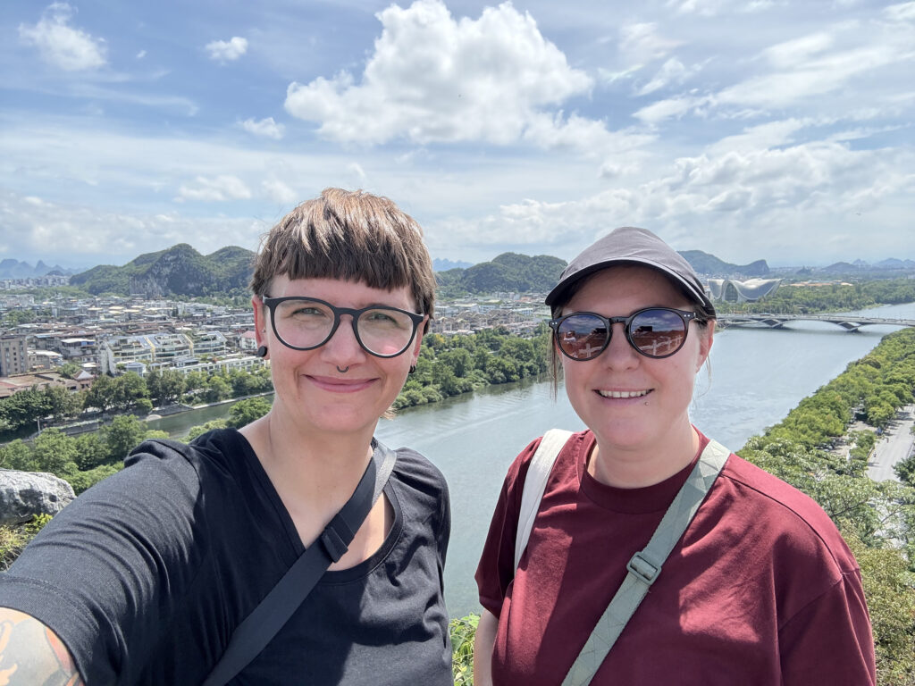 Irgendwann legten wir in Yangshuo an – einer lebhaften Kleinstadt südlich von Guilin, die bei Tourist:innen sehr beliebt ist. Mit etwas Glück trifft man hier sogar auf Menschen, die Englisch sprechen.