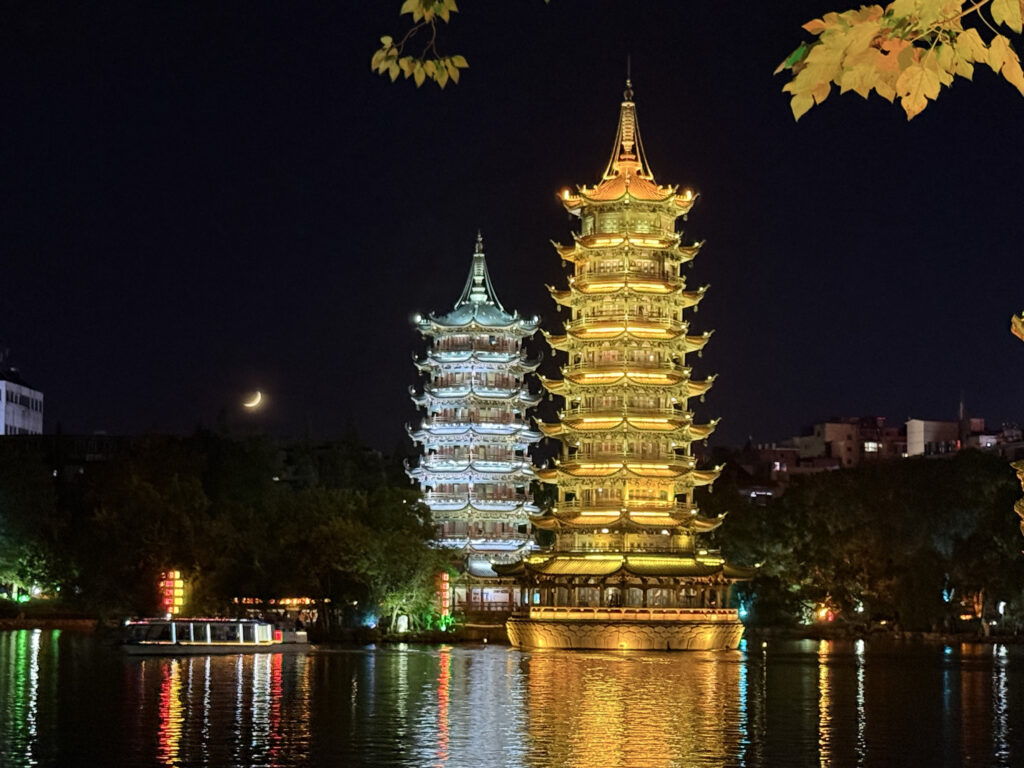Guilin zeigte uns eine andere Seite Chinas – karstgeprägte Landschaften, Höhlen und Teeplantagen, eingebettet in eine geschäftige, moderne Stadt. Nach den ruhigen Tagen in Longsheng war es fast ein kleiner Kulturschock: bunter, lauter, dichter.
