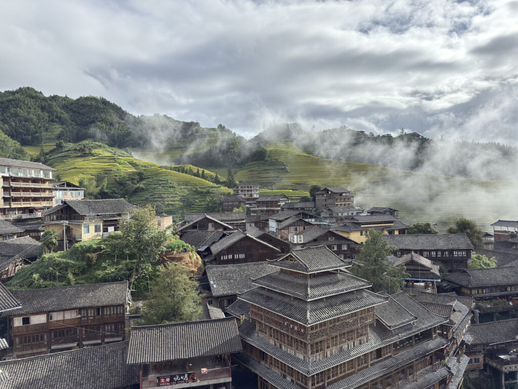 Fränn war heute schon früh wach. Um 5:30 Uhr beobachtete sie die immer noch beleuchteten Reisterrassen, die im Morgendunst schimmerten. Der Wecker klingelte erst um 7:20 Uhr – da hatte sie schon etliche China-Fakten im Internet recherchiert. Wenn man schon wach ist, kann man die Zeit schließlich nutzen. 😄