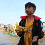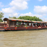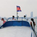 Den restlichen Tag verbrachten wir mit der Bootsfahrt nach Phnom Penh. Gebucht hatten wir ein Speedboot. Die ersten zwei Stunden fuhren wir auch mit diesem. Es war klein, eng und stickig, aber flott auf dem Wasser unterwegs. An der Grenze zu Kambodscha mussten alle Passagiere kurz das Boot verlassen. Für das Visum waren 35 Dollar fällig. Wir besorgten uns zur Stärkung noch ein paar Bananen. Nach dem wir die Grenze zur Kambodscha passiert hatten, lud man uns in einen anderen Kahn um. Dieser bewegte sich nicht mehr so rasch fort wie das vorherige Gefährt. Aber auch dort war die Hitze unter Deck unerträglich. Zum Glück gab es hier einen Außenbereich. Wir nutzen die Schwimmwesten um es uns gemütlich zu machen, denn die Sitzmöglichkeiten auf dem Deck reichten nicht für alle Ausflügler. Ungünstig für Unterhaltungen waren die lauten Motorengeräusche des Schiffes. Der Lärmpegel war ohrenbetäubend und beschalte uns bis zum Anlegen in Phnom Penh.