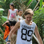 Man verfrachtete uns für die nächsten drei Stunden in einen Bus. Angeblich sollte dieser uns zu unserem Hotel führen. Doch wir wurden an einer Kreuzung in einen anderen Bus überführt, dieser chauffierte uns zum Glück in den Forrest. Den Forrest fuhren wir mit Booten ab. Zuerst in einem Motorboot, das alles Getier und die schönen Vögel mit seinen lauten Bootsgeräuschen vertrieb. Durch einen künstlich angelegten Wald paddelten wir dann mit einem keinen Ruderboot. Fiese Mücken stachen uns in Arm und Bein. Änn & Fränn lauerten abenteuerlustig auf gefährliche Krokodile und Riesenschlangen. Aber bis auf ein paar Vögel und die Sumpflandschaft war hier leider nicht viel zu sehen.